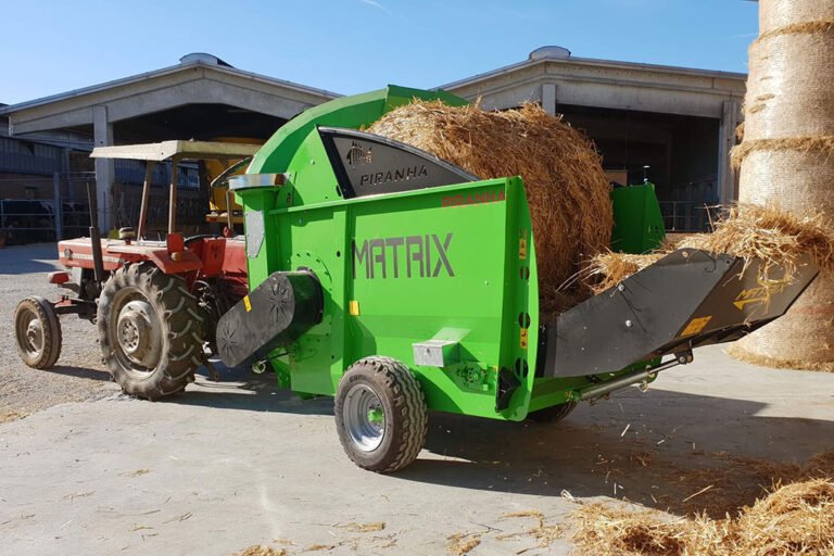 La machine est idéale pour le traitement de produits fibreux secs (paille, tiges de maïs, foin, etc.) conditionnés en balles rondes et prismatiques à répartir sur litière, en logette ou en mangeoire.