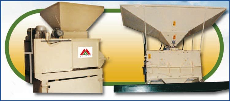 Machine pour le broyage court et la distribution de produits secs pour litière.