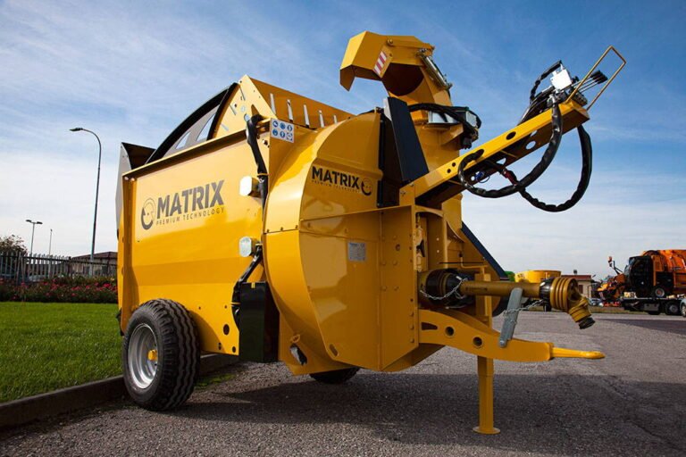 La machine est idéale pour le traitement de produits fibreux secs et humides (paille, tiges de maïs, foin, herbe, etc.) conditionnés en balles rondes et prismatiques à distribuer sur litière, dans une logette ou dans une mangeoire. Le produit est chargé depuis la porte arrière et acheminé à l’intérieur de la caisse jusqu’aux rouleaux de coupe équipés de couteaux qui le coupent et le déchargent sur le ventilateur de distribution qui le souffle ensuite vers la décharge rotative supérieure. En agissant sur la vitesse des rouleaux de coupe (deux vitesses disponibles en standard) et en ajustant la vitesse d’avance du tapis de chargement, la longueur de coupe peut être déterminée, environ de 5 à 10 cm (selon le type de produit). La machine est également équipée en standard d’une fourche positionnée devant les rouleaux de coupe qui peut être ajustée (en la rapprochant ou en l’éloignant) pour doser son alimentation en fonction de la dureté du produit et du type de coupe souhaité.