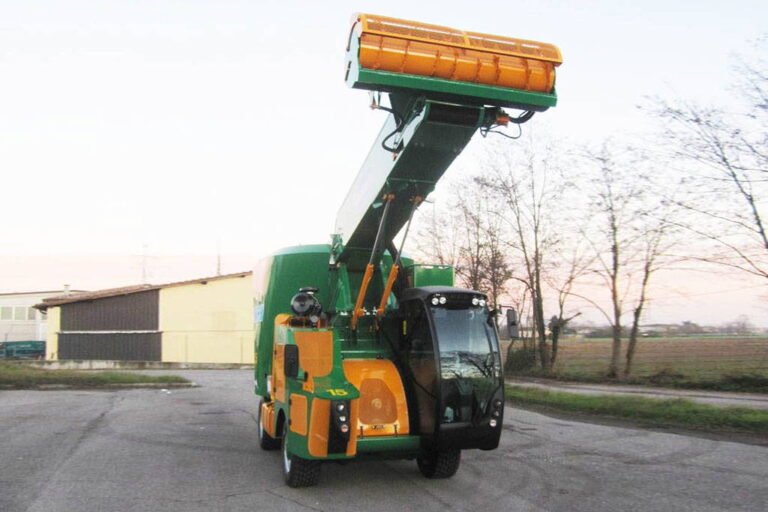 Les mélangeuses automotrices verticales Italmix Mech et Mech Twin sont disponibles en modèles à simple et double vis. La série Mech a la transmission mécanique de la vis sans fin au moyen d’un embrayage refroidi dans un bain d’huile et d’un moteur avant : cette solution technique permet aux wagons automoteurs unifeed Mech de hautes performances, fiabilité et rapidité avec une économie de fonctionnement inégalée ! Mélange et coupe parfaits, rapidité, simplicité de construction, fiabilité, compacité, faibles coûts de fonctionnement et d’entretien : ce qu’il faut dans les fermes modernes ! La large possibilité de personnalisation de ces wagons hacheurs-mélangeurs automoteurs, la possibilité de pouvoir positionner les vidanges sur tous les côtés de la citerne, 4 roues motrices et directrices sur demande et de nombreuses autres solutions techniques optionnelles permettent au client de pouvoir d’utiliser une machine parfaitement conforme au cahier des charges besoin pour leur propre élevage ! Les principaux composants utilisés (réducteurs, vis sans fin, réservoir, système hydrostatique, système de pesée, etc.) sont tous de marque leader et surdimensionnés afin de toujours garantir un haut niveau de qualité et de fiabilité.
