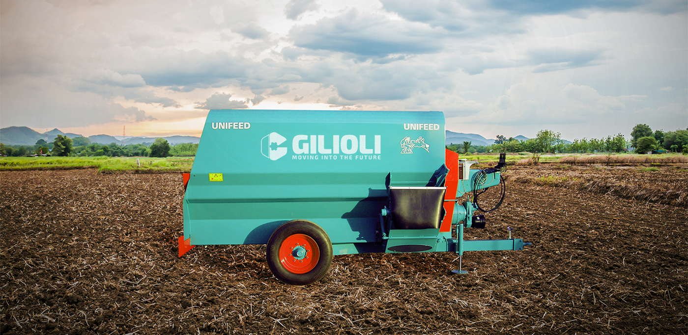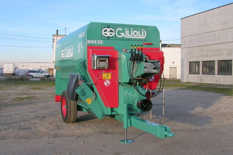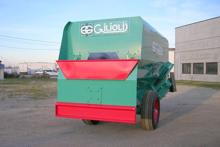 Mélangeuse traînée à trois vis horizontales sans couteau. La vis à lame inférieure est équipée de couteaux et de contre-couteaux et les deux longues vis supérieures contrarotatives permettent un mélange rapide et homogène. La machine est particulièrement adaptée au traitement de produits humides tels que l’herbe d’ensilage, l’ensilage de maïs, la purée de maïs, etc.