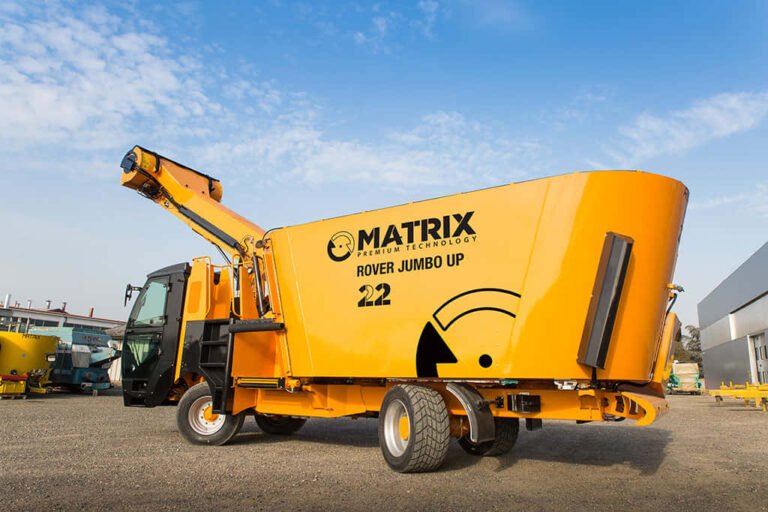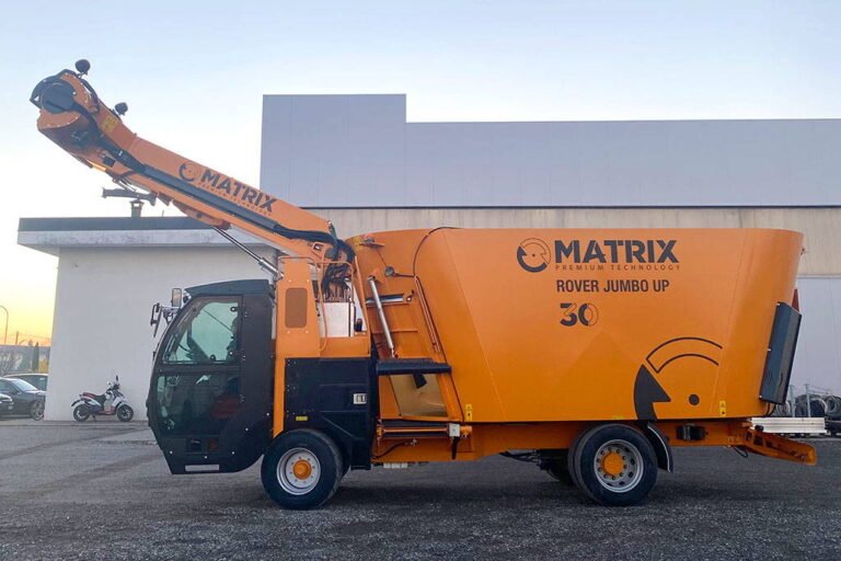 Les mélangeuses automotrices Matrix des séries « Rover Up » et « Rover Jumbo Up » sont respectivement des machines technologiquement innovantes à une et deux vis verticales qui répondent aux besoins des agriculteurs les plus exigeants. Les particularités de Rover Up et Rover Jumbo Up sont la transmission mécanique de la tarière via un embrayage multidisque dans un bain d’huile, la suspension hydraulique sur l’essieu avant pour un confort maximal de l’opérateur et, sur demande, le changement de vitesse de la tarière Powershift . . Le mouvement de la machine et le fonctionnement de la fraise sont assurés par des systèmes hydrauliques en circuit fermé avec des pompes à pistons à cylindrée variable et des moteurs à pistons haute pression.